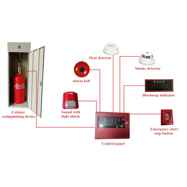 Cabinet type fm200 fire suppression system assemblys easily. A complete system is formed by two parts, the extinguishing device and eletrical elements. The extinguishing device is composed by the following:
